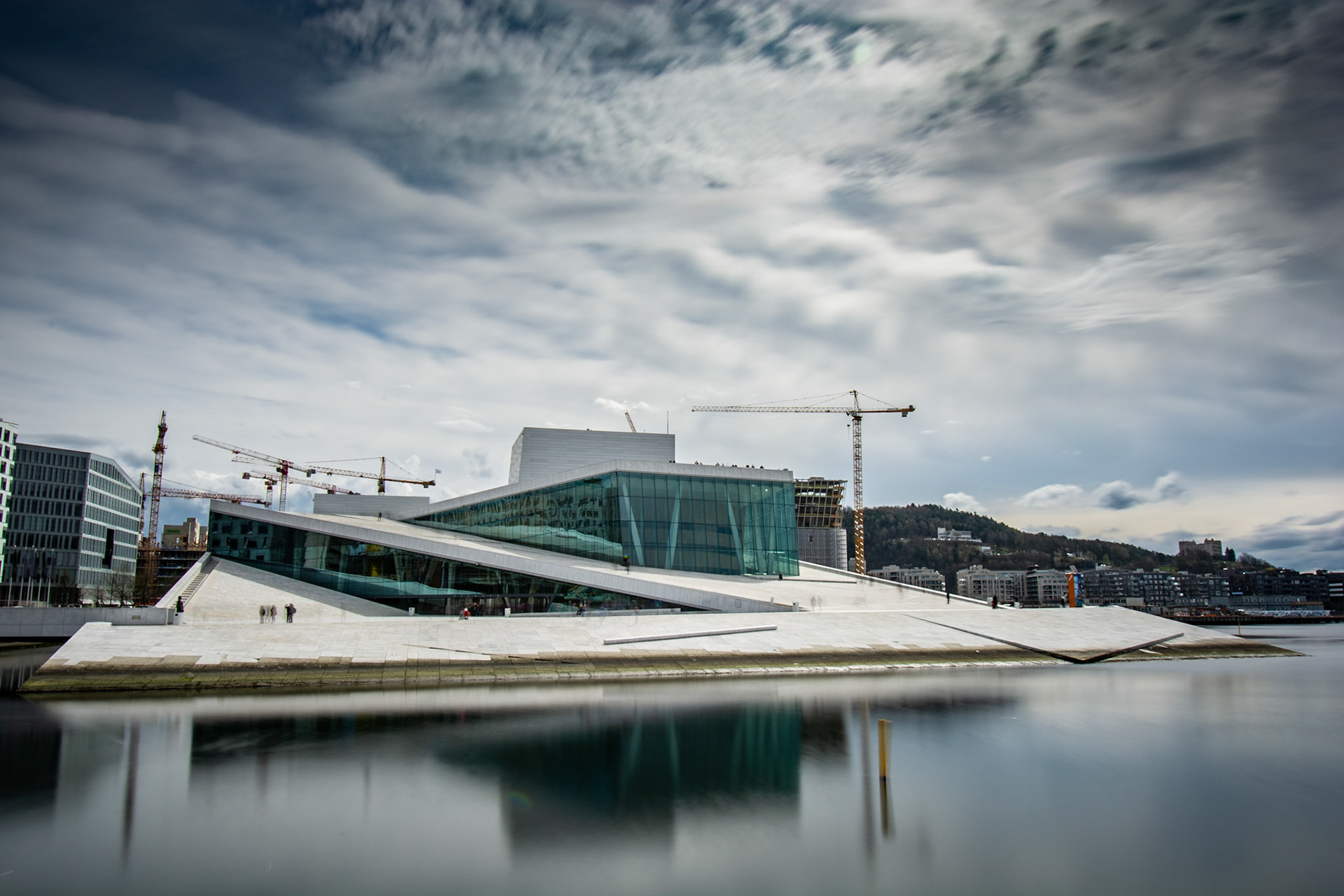 Bilder av bygninger og kjøretøy.